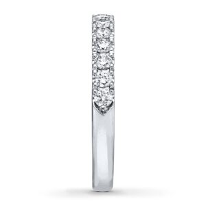 With sparkling round diamonds totaling 1/2 carat in weight, this wedding band is a wonderful way to symbolize your commitment. The 14K white gold ring is designed to accompany her matching engagement ring (sold separately).