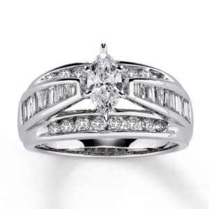 Previously Owned Diamond Engagement Ring 1 ct tw Round/Baguette 14K White Gold